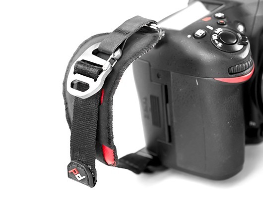 Clutch je rychloupínací a rychle nastavitelný popruh pro fotoaparát na ruku. První na světě! Když potřebujete, poskytuje Clutch pevné uchycení, současně jej však lze velmi rychle povolit pro lepší dosah na ovládací prvky fotoaparátu. Vyrobeno z prvotřídních materiálů a součástí (Hypalon, vycpávka z mikrovlákna a duralová přezka), inspirovaných a konstrukčně vycházejících z horolezeckého vybavení.
