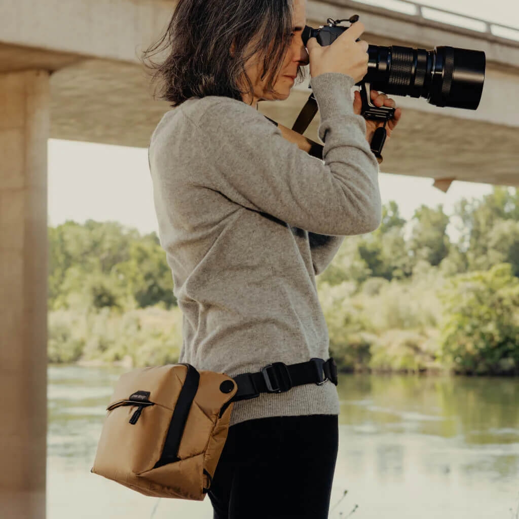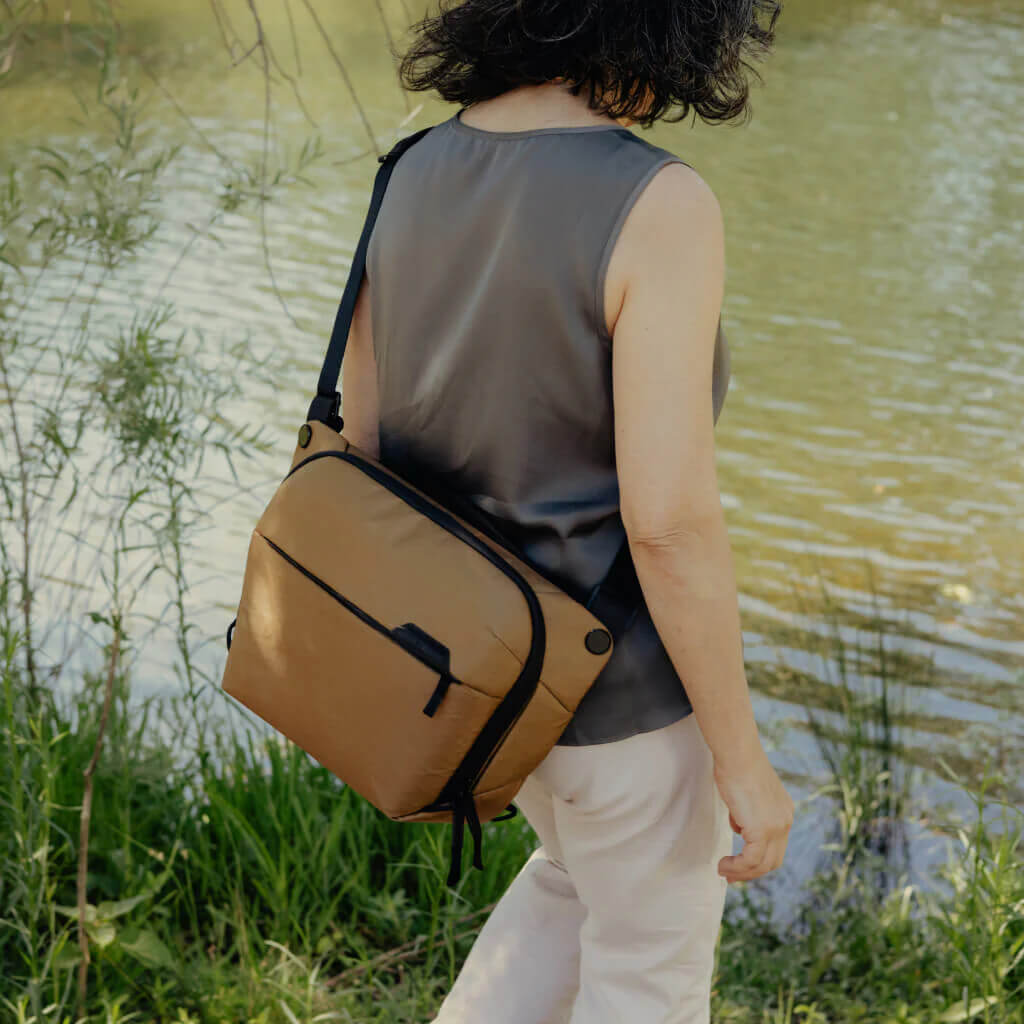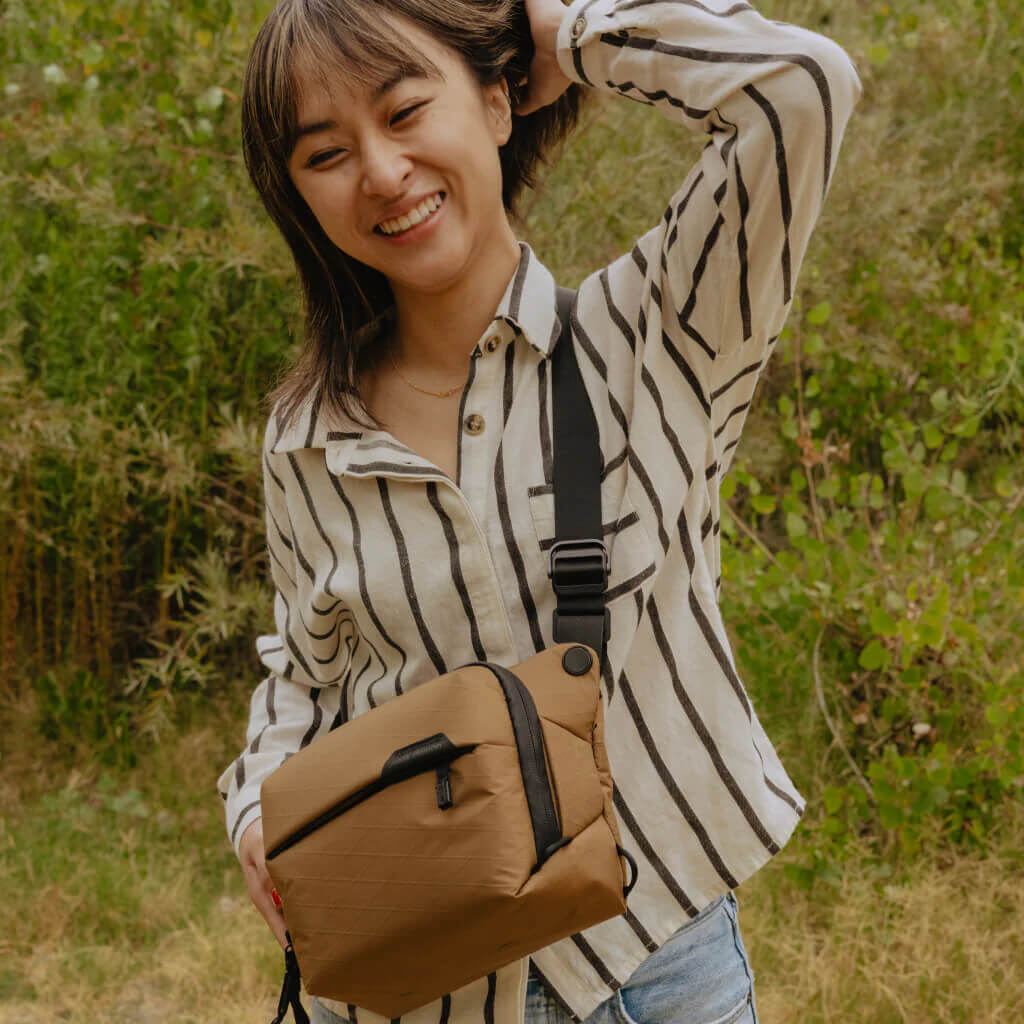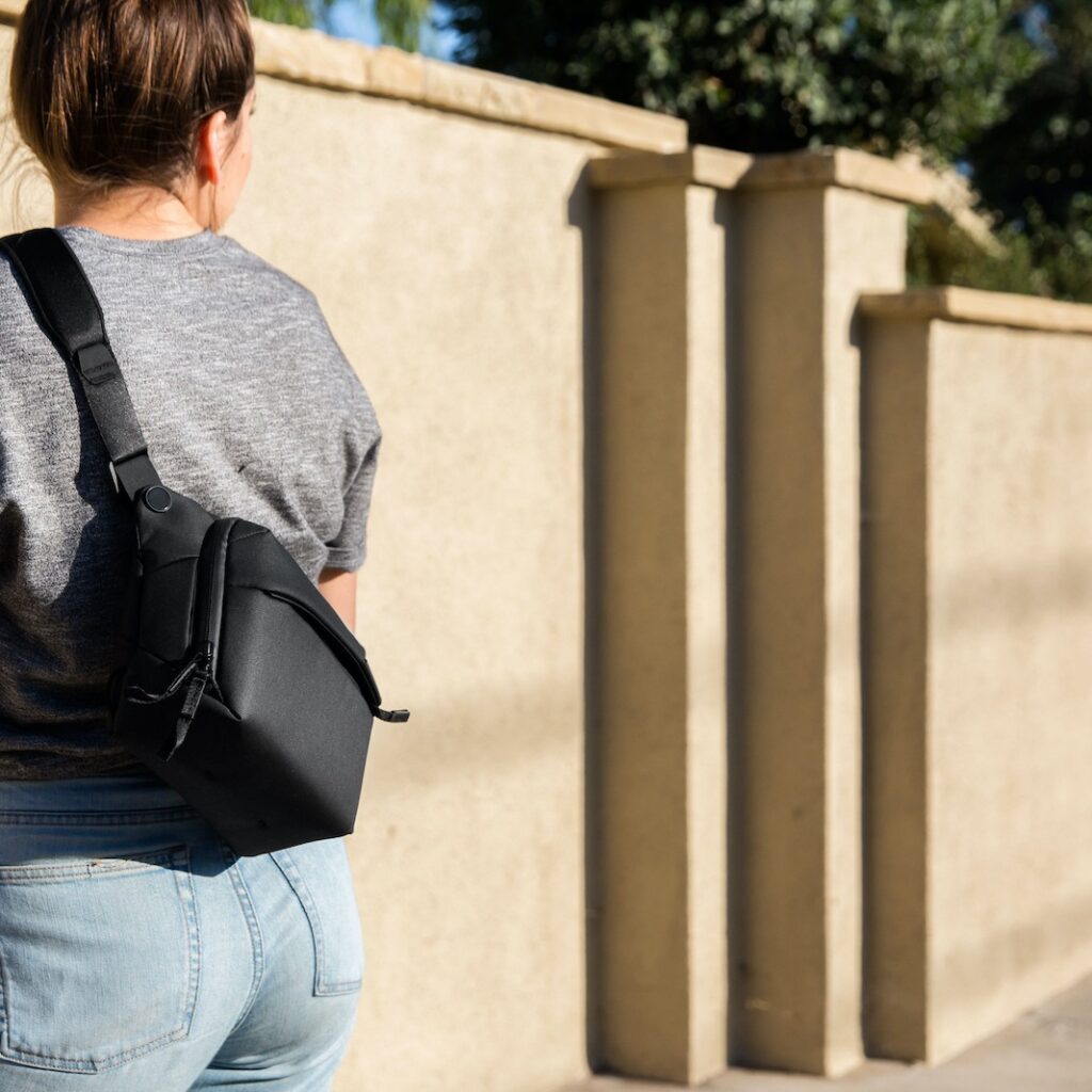 • Přes rameno nebo kolem pasu: Popruh brašny Sling 3L a 6L lze rychle přenastavit a nosit ji přes rameno nebo kolem pasu.