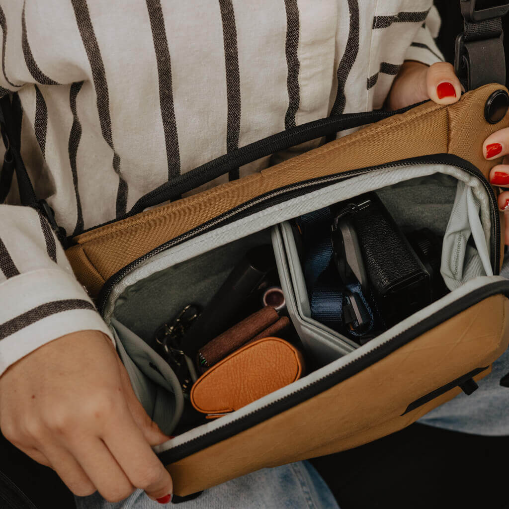 Nejmenší a nejlehčí brašny naší Everyday Line - Everyday Sling [v2], jsou navrženy pro transport té nejnutnější každodenní výbavy nebo foto techniky na kratších i delších cestách. Jsou k dispozici ve 3 velikostech pro širokou škálu použití – od notebook přes profesionální DSLR, oblečení, svačinu, objektivy, drony až po malé fotoaparáty a drobnosti. Sling lze nosit přes rameno nebo kolem pasu a díky speciální přezce lze popruh rychle prodloužit (pro snazší přístup k obsahu brašny) nebo zkrátit (pro lepší stabilitu při rychlejší chůzi nebo na kole). Rychlý a široký přístup z vrchu pomocí zipu odolnému vlivům počasí a uvnitř unikátní rychle konfigurovatelné přepážky FlexFold pro vždy perfektní uspořádání a ochranu obsahu brašny. více