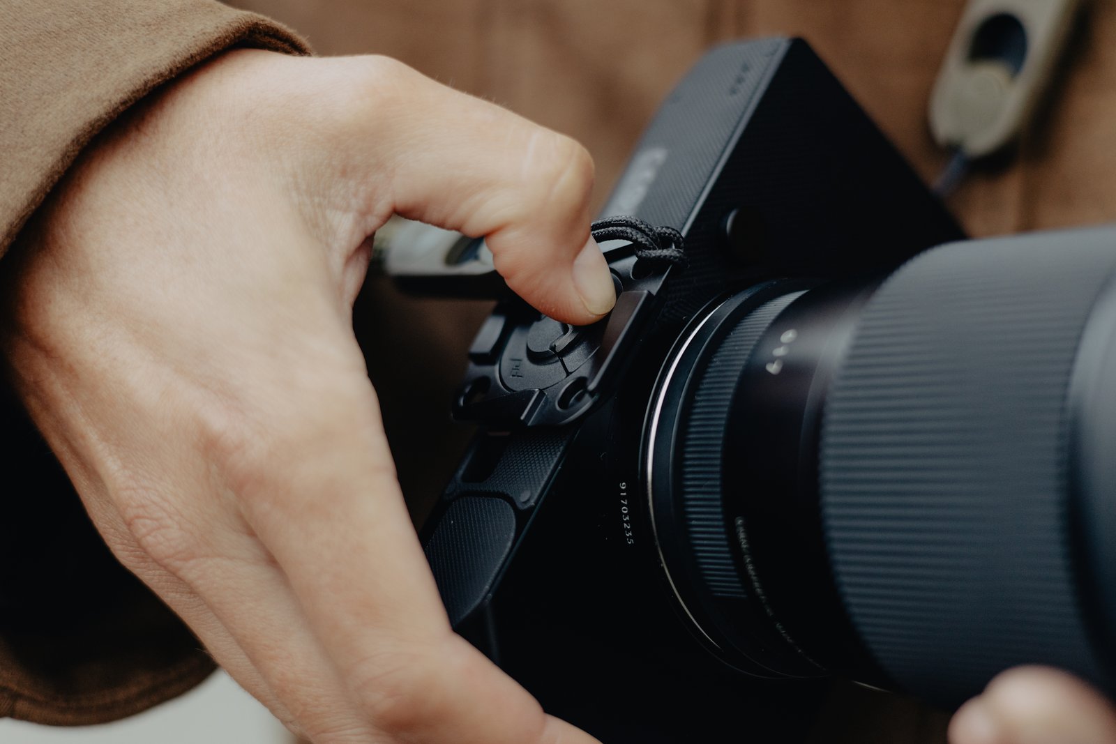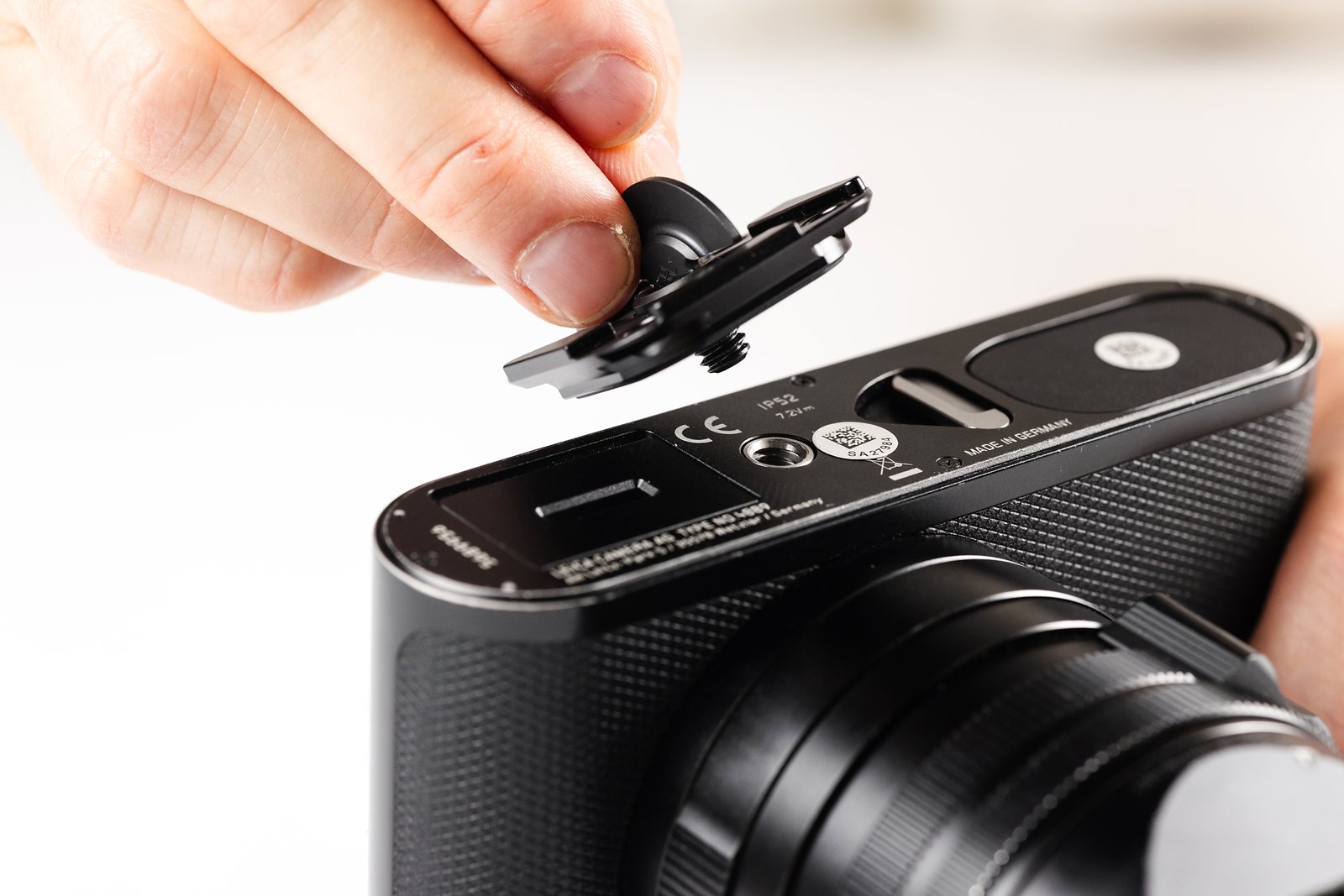 • Protiskluzová podložka z lisované gumy brání protočení destičky na těle fotoaparátu