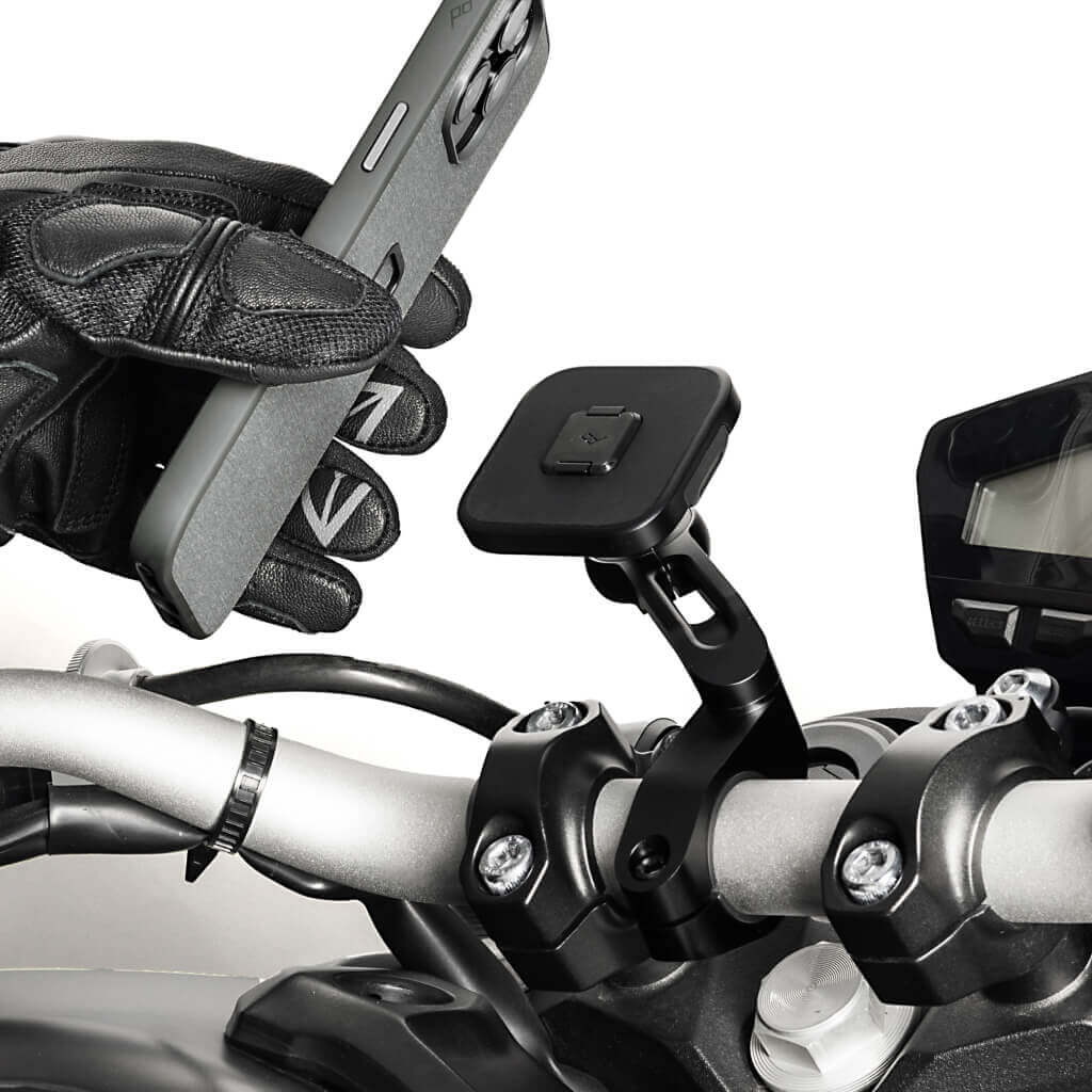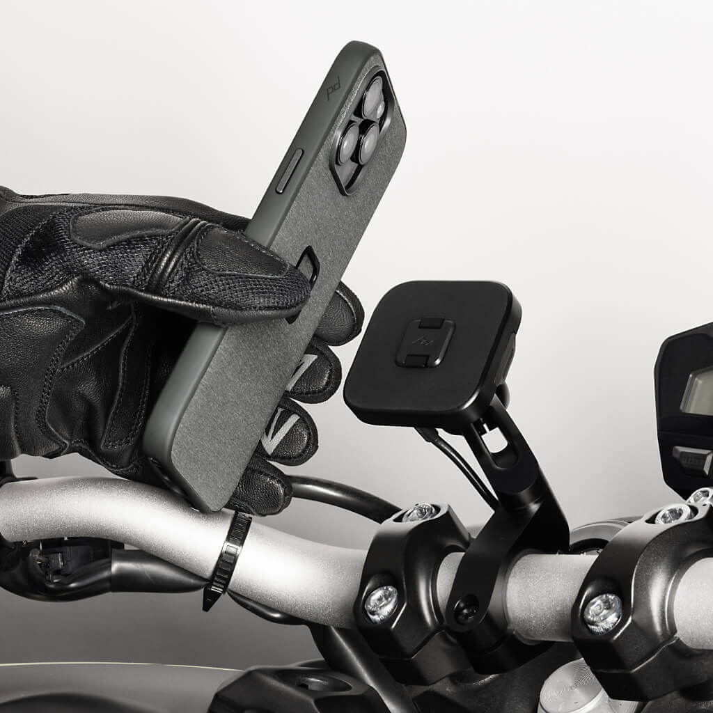 Všestranný a bezpečný držák telefonu na motorku, který je krásný, odolný, nastavitelný a úžasně snadno se používá - nyní s nejrychlejším bezdrátovým nabíjením díky certifikaci Qi2*. Přestaň se trápit s držáky, které jsou objemné, neohrabané a nevzhledné. Držák lze bezpečně připevnit na širokou škálu řídítek (od průměru 7/8" do 1,25"). Mimořádně silný magneticko-mechanický zámek (SlimLink™) telefon uchopí a uzamkne tak snadno, že tě to naprosto okouzlí. Telefon můžeš okamžitě vyjmout stisknutím tlačítka - dokonce i v rukavicích. Pevné nastavovací rameno s volně otočným kulovým čepem umožňuje přizpůsobit polohu telefonu pro optimální zobrazení. Pro montáž blíže k řidítkům můžeš rameno odejmout. Nejlepší tlumič vibrací ve své třídě zabraňuje poškození telefonu i při jízdě v terénu, ale zároveň zachovává dostatečnou tuhost, abys mohl s telefonem snadno pracovat i během jeho uchycení. Konstrukce z obráběného/anodizovaného hliníku odolná proti povětrnostním vlivům s upevňovacími prvky z nerezové oceli. více
