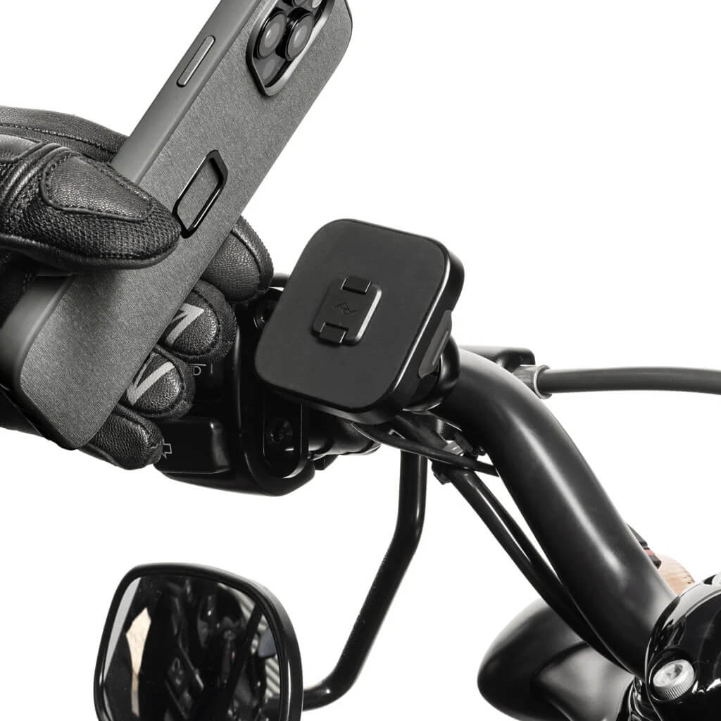 Všestranný a bezpečný držák telefonu na motorku, který je krásný, odolný, nastavitelný a úžasně snadno se používá - nyní s nejrychlejším bezdrátovým nabíjením díky certifikaci Qi2*. Přestaň se trápit s držáky, které jsou objemné, neohrabané a nevzhledné. Držák lze bezpečně připevnit na závity šroubů objímky brzdy nebo spojky motocyklu. Je kompatibilní se závity šroubů většiny brzd a spojek a je ideální pro motocykly, kde již na řídítkách nezbývá místo nebo pro cruisery typu V-twin s průměrem řídítek více než 1,25”. Mimořádně silný magneticko-mechanický zámek (SlimLink™) telefon uchopí a uzamkne tak snadno, že tě to naprosto okouzlí. Telefon můžeš okamžitě vyjmout stisknutím tlačítka - dokonce i v rukavicích. Pevné nastavovací rameno s volně otočným kulovým čepem umožňuje přizpůsobit polohu telefonu pro optimální zobrazení. Nejlepší tlumič vibrací ve své třídě zabraňuje poškození telefonu i při jízdě v terénu, ale zároveň zachovává dostatečnou tuhost, abys mohl s telefonem snadno pracovat i během jeho uchycení. Konstrukce z obráběného/anodizovaného hliníku odolná proti povětrnostním vlivům s upevňovacími prvky z nerezové oceli. více