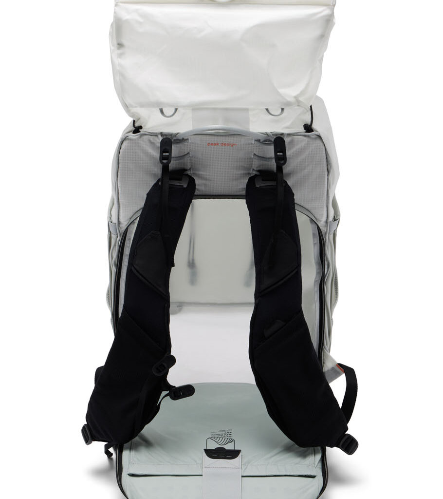 Jedinečný, všestranný a nízkoprofilový nosný systém nabízí maximální pohodlí pro nejširší škálu typů postav. Ramenní popruhy inspirované běžeckými vestami odlehčují zátěž z ramen a paží a rovnoměrně ji rozkládají po větší části těla. Zároveň díky dvěma pružným mesh kapsám poskytují ideální úložiště pro drobnosti, ke kterým cheš mít rychlý přístup (třeba telefon nebo soft flask). Navíc ukrývají upevňovací body pro Capture Camera Clip*. Odnímatelný, snadno uložitelný a plně nastavitelný polstrovaný bederní pás poskytuje pohodlné rozložení zátěže, další úložný prostor (jedna zipová a jedna průhmatová kapsa) a další upevňovací body pro Capture Clip*. Tento batoh je vysoce odolný proti oděru a funkčně voděodolný díky Terra Shell™ 210D ripstop nylonu, který je 100% recyklovaný, schválený certifikací Bluesign a ošetřený nejen impregnací bez PFAS ale také vnitřním PU zátěrem. Volitelná pláštěnka Rain Fly* poskytuje plnou ochranu proti vodě. více