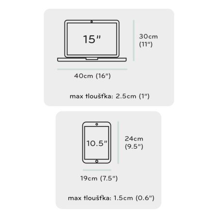 • Max rozměry tabletu: 24cm x 19cm x 1.5cm