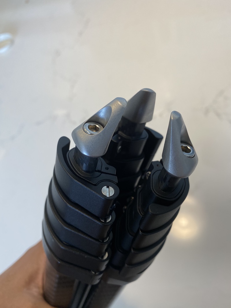 Poznámka: Travel Tripod můžete i s připevněnými hroty stále vložit do přiloženého ochranného pouzdra, aniž by byla třeba demontáž.